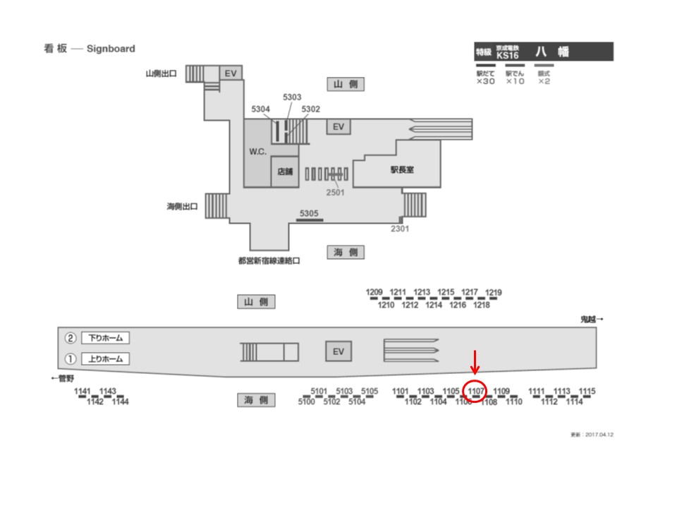 京成本線 八幡駅の上りホーム(京成高砂・青砥・上野方面)の線路前の看板です。ホームで電車を待つ際に見えます。