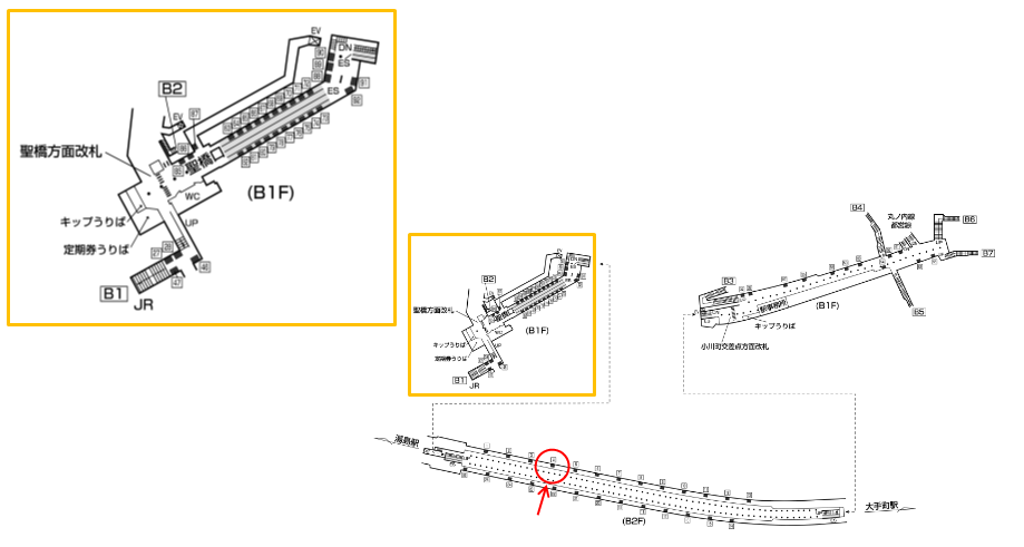 改札外コンコース(聖橋方面改札 JR線乗り換え側)