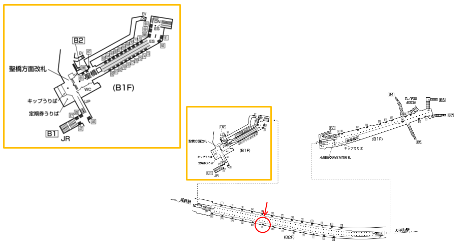 ○千代田線№47 改札外コンコース(聖橋方面改札 JR線乗り換え側) |
