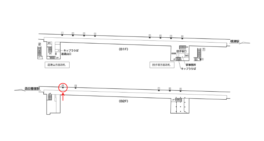 東京メトロ 千駄木駅のホームにある駅看板です。