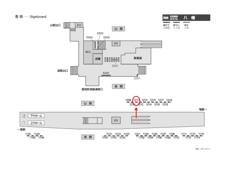 京成本線 八幡駅の下りホーム(京成船橋・京成津田沼・成田空港方面)の線路前に設置された看板です。ホームで電車を待つ際に見えます。