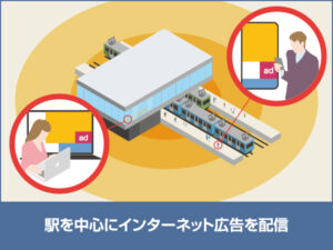 駅ターゲティング広告・ジオターゲティング広告(インターネット広告)は6ヶ月や12ヶ月の広告スパンで利用される駅広告で、月額の広告料金は他の駅広告と比較してリーズナブルに設定されています。