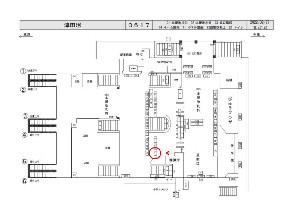 JR総武線津田沼駅の改札内に設置された看板(間接照明)です。改札からホームへ向かう際に見えます。