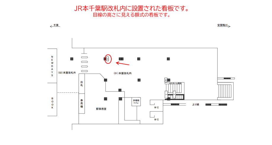 JR 本千葉駅の改札内の柱に設置されている看板です。