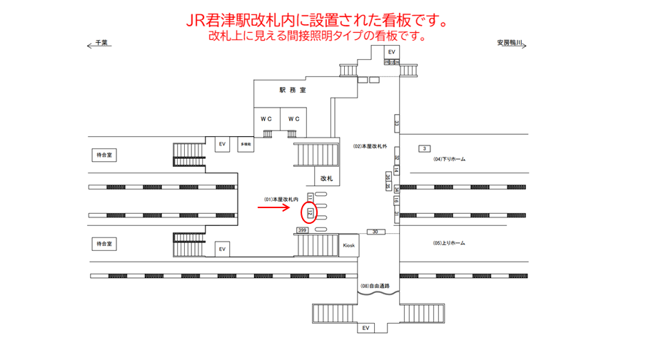 JR君津駅の改札内の看板です。