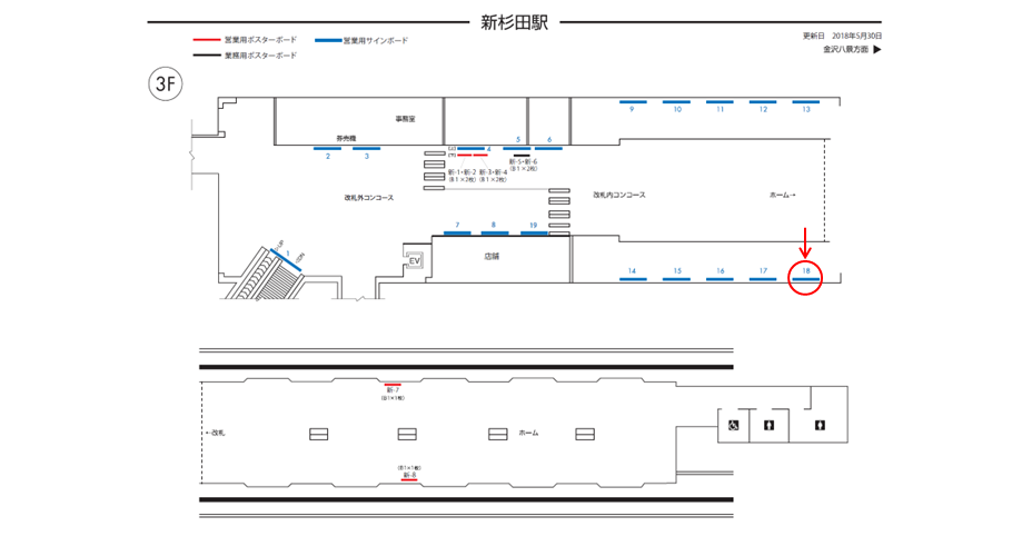 駅看板は6ヶ月や12ヶ月の広告スパンで利用される駅広告で、月額の広告コストが他の駅広告と比べて価格が抑えられております。