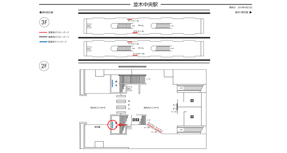 この駅看板は毎日駅を使う「並木中央駅に生活基盤をもつ消費者」を対象とした広告にオススメです。
