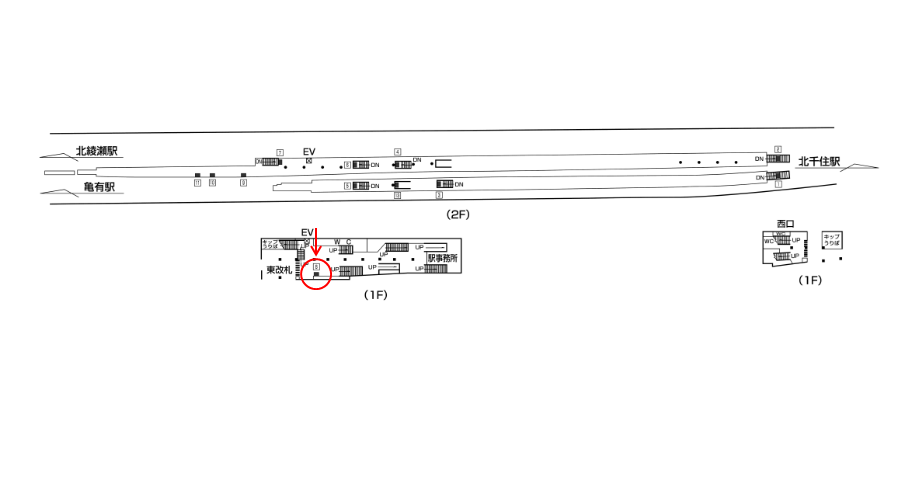 駅構内にある駅看板は「これから電車に乗る方」もしくは「駅を出る方」に見てもらえます。いずれにしても駅を利用するタイミングで広告に接触します。移動中に見てもらえる駅構内の駅看板は、綾瀬駅の周辺にある店舗施設の紹介や道案内に利用されています。特に駅の出口付近にある駅看板は、店舗までの距離が近く案内看板に適しています。