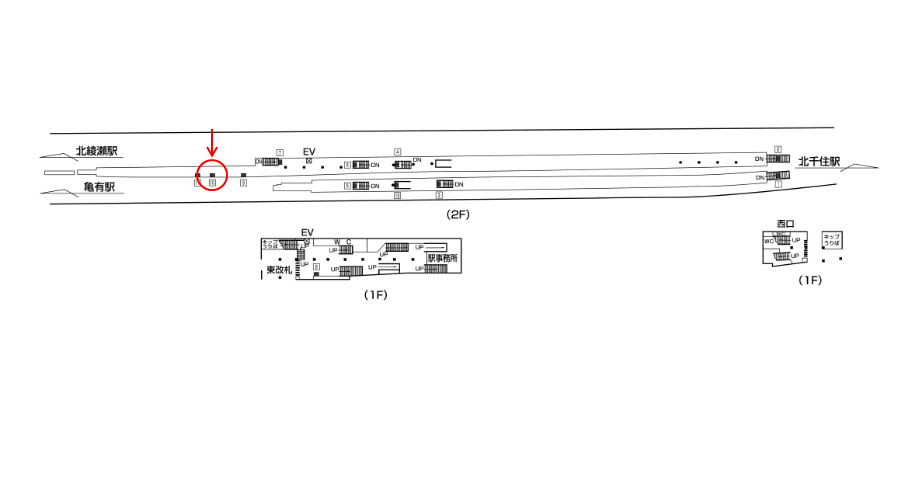 こちらの駅看板は「これから駅を出る方」に見てもらえます。階段付近は駅利用者が集中するエリアで目に留めてもらいやすい広告ロケーションです。サービス周知や企業広告などに適しており、日常的に駅を使う「綾瀬駅に生活基盤をもつ消費者」を対象とした広告にオススメです。