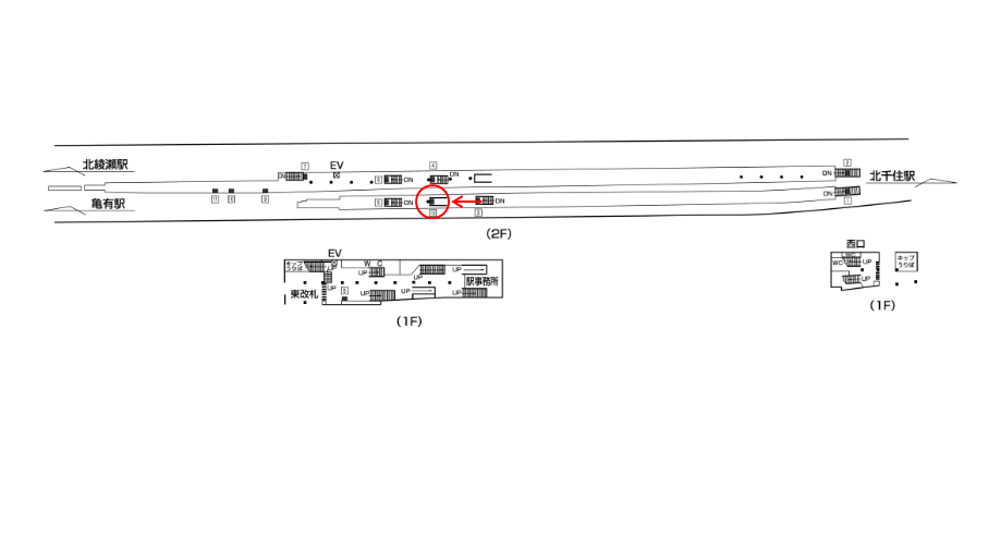 こちらの駅看板は「これから駅を出る方」に見てもらえます。階段付近は駅利用者が集中するエリアで目に留めてもらいやすい広告ロケーションです。サービス周知や企業広告などに適しており、日常的に駅を使う「綾瀬駅に生活基盤をもつ消費者」を対象とした広告にオススメです。
