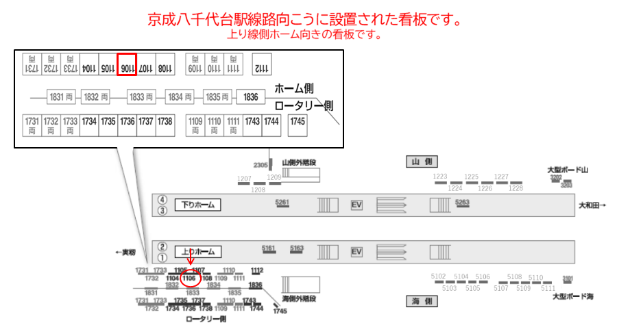 京成本線八千代台駅の上り線側の看板です。