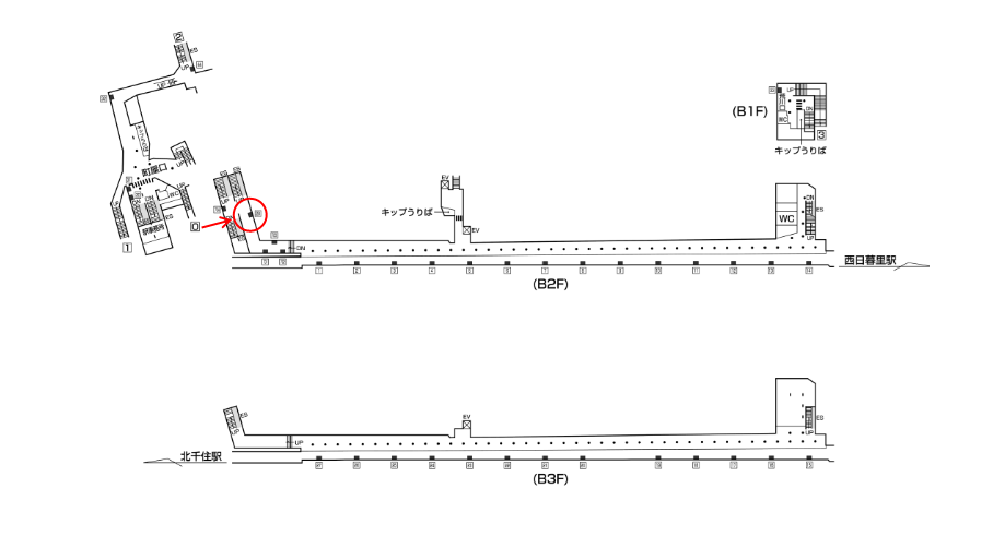 ○千代田線№703 改札内コンコース(町屋方面改札側 地下2階 代々木方面ホーム階) |