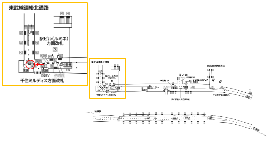 ○千代田線№47 改札内コンコース(千住ルミディス方面改札) |