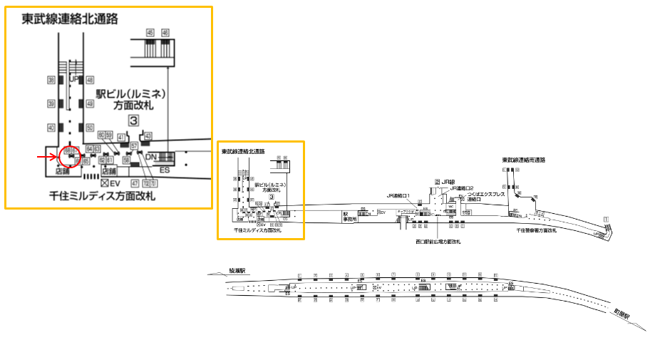 ○千代田線№47 改札内コンコース(千住ルミディス方面改札) |