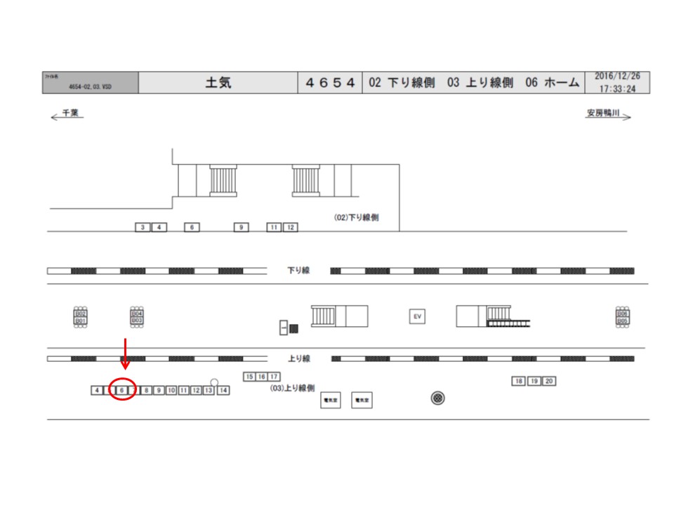 JR外房線 土気(とけ)駅の上りホーム(蘇我・千葉・船橋・舞浜・東京方面)の線路前に設置されている看板です。上りホームで電車を待つ際に見えます。