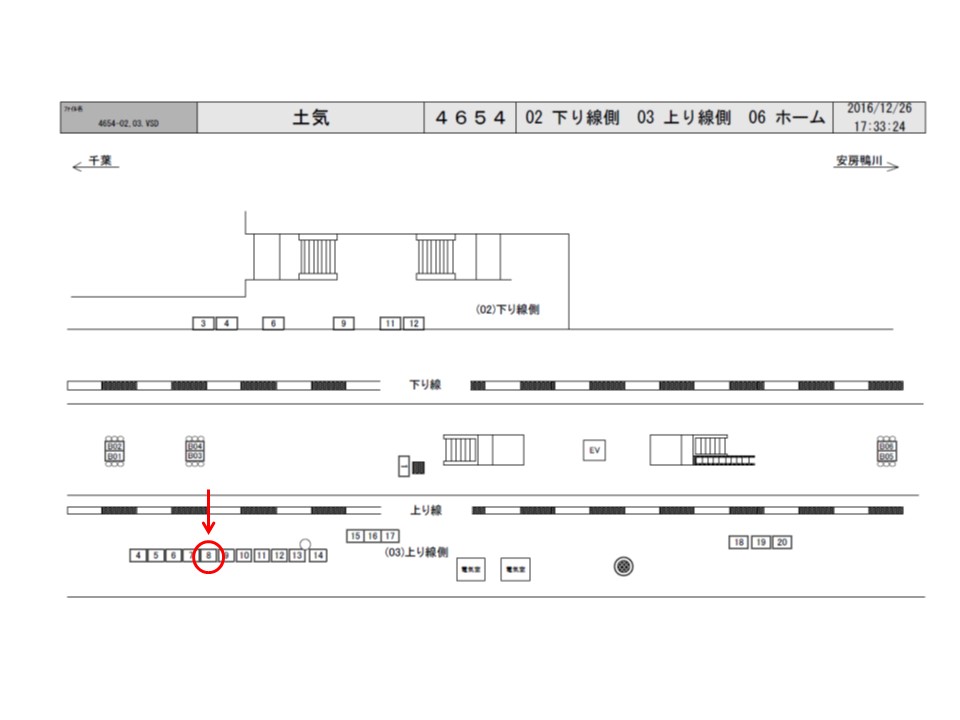 JR外房線 土気(とけ)駅の上りホーム(蘇我・千葉・船橋・舞浜・東京方面)の線路前に設置されている看板です。上りホームで電車を待つ際に見えます。