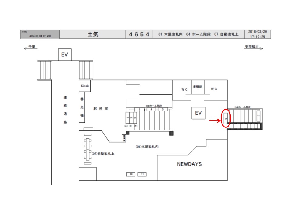 JR外房線 土気(とけ)駅のホーム階段にある看板です。