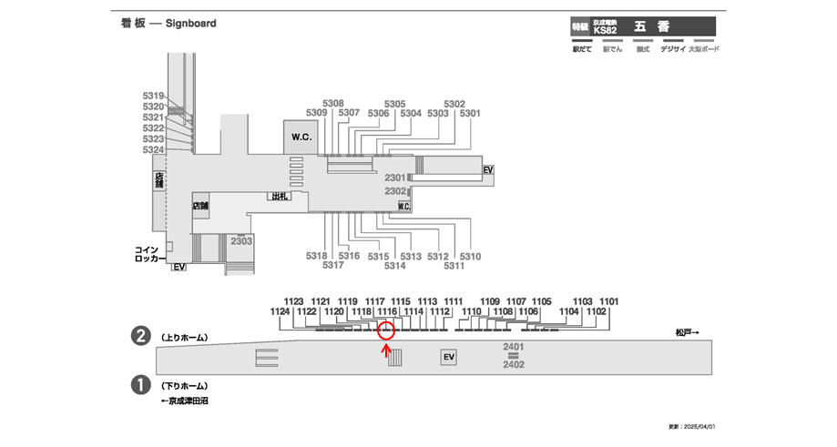 千葉県松戸市内の京成五香駅の上りホームの線路前に設置された看板です。ホームで電車を待つ際に見えます。