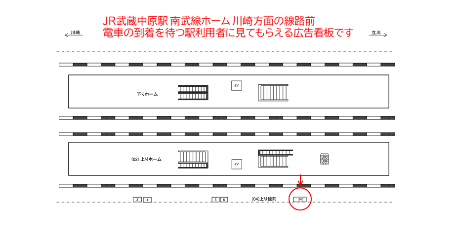 駅看板「JR 武蔵中原駅 上り線前№340」