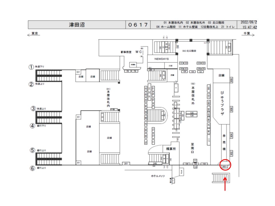 JR津田沼駅改札外に設置されている看板です。南口のデッキら改札へ向かう際に見えます。