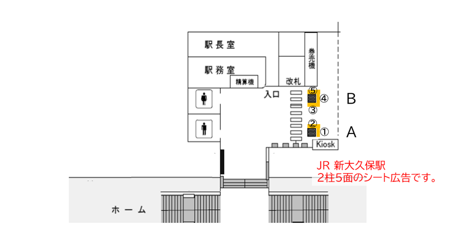 | 媒体No. | 新大久保改札外アドピラー2本セット |