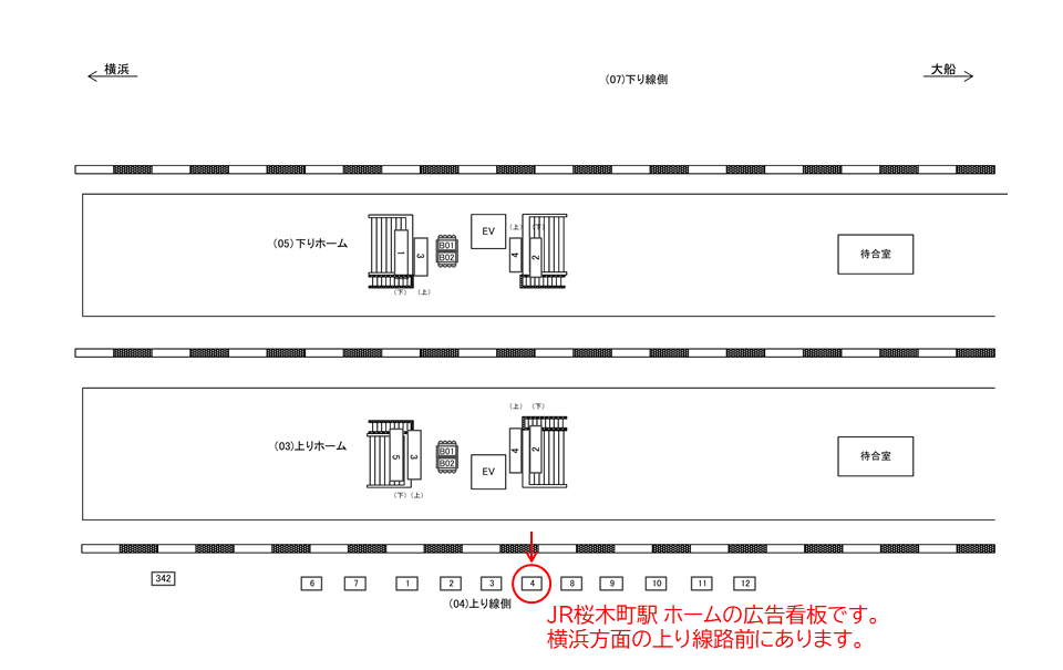※桜木町駅はホームドアの利用が開始されています。線路前看板は一部見え方に支障する場合がございますのでご検討の際はご留意ください。