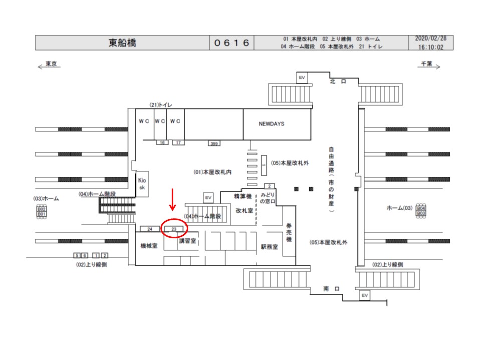 JR 東船橋駅の改札内の看板です。ホームから改札へ向かう際に見えます。