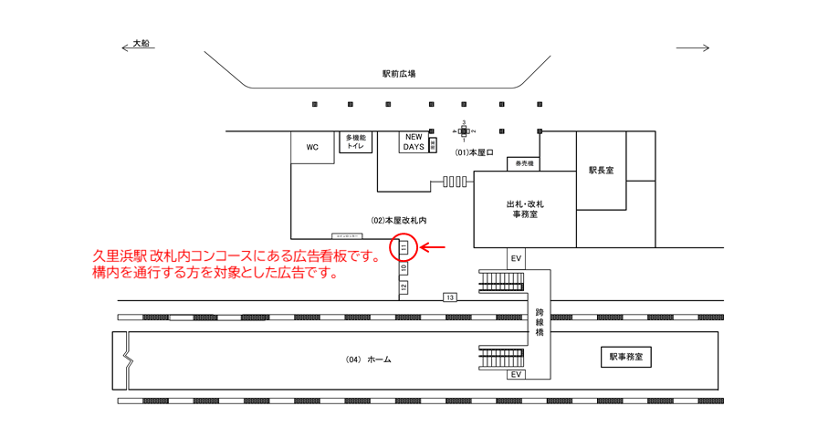駅看板「JR 久里浜駅 本屋改札内№11」