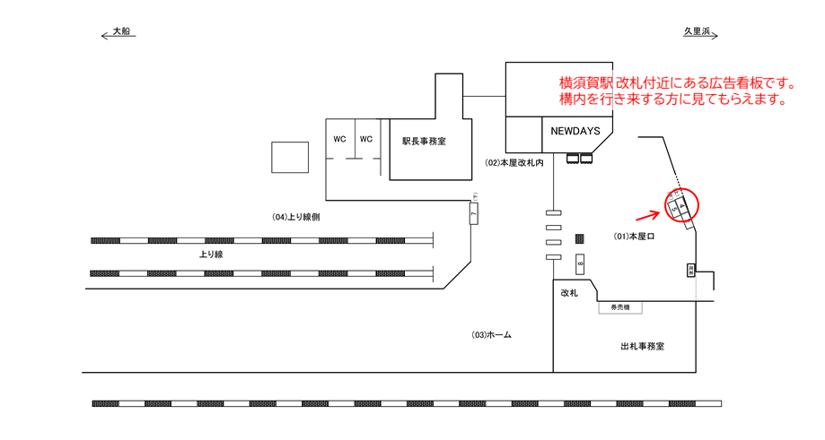 JR横須賀駅の改札外コンコースにある広告看板です。駅を出る方に見てもらえます。