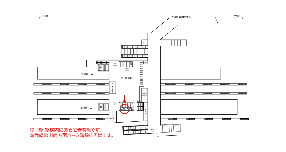 ■ 駅看板「JR 登戸駅 本屋口№23」の広告ロケーション