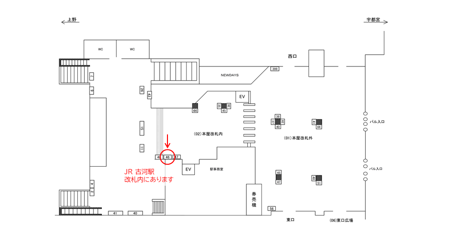 古河駅の改札内コンコースにある電飾看板です。宇都宮線ホームと改札を行き来する途中にあります。