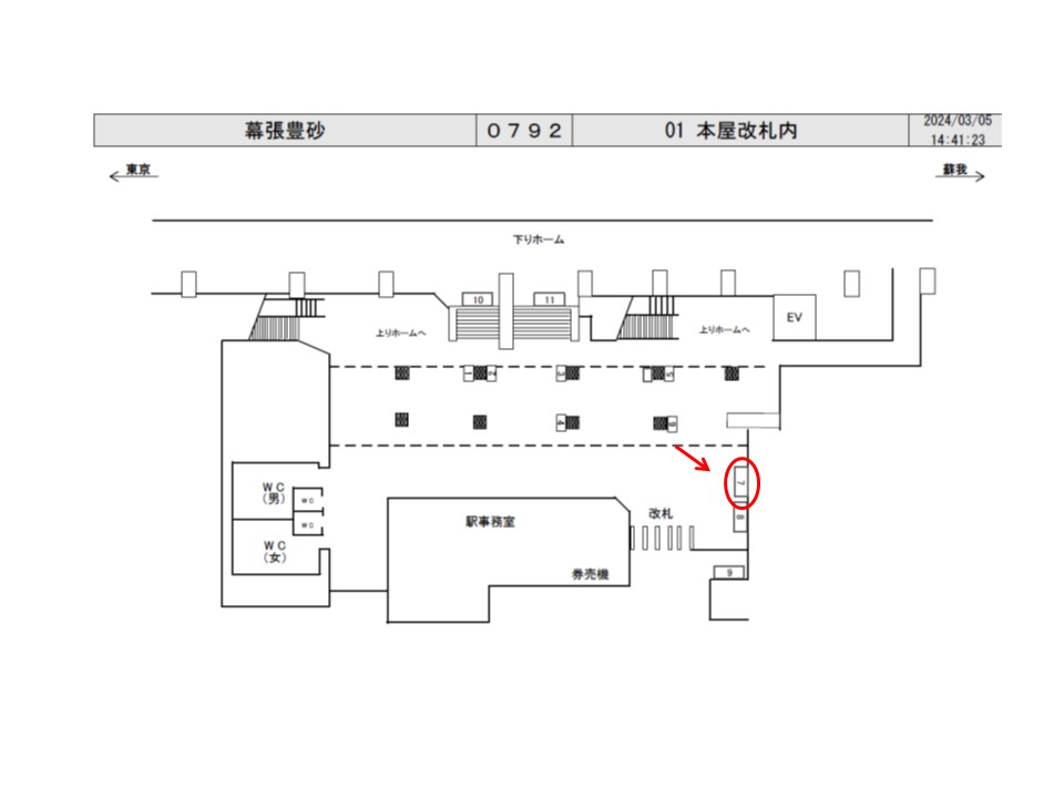 JR京葉線幕張豊砂駅の改札内の看板です。自動改札近くに設置されており、改札を出入りする際に見えます。