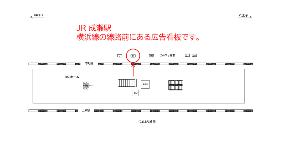 駅看板「JR 成瀬駅 下り線前№11」