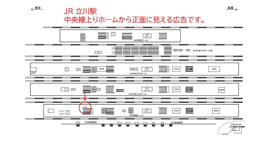 ○中央下りホーム前№137 線路前(JR中央線 立川・八王子・高尾方面) |