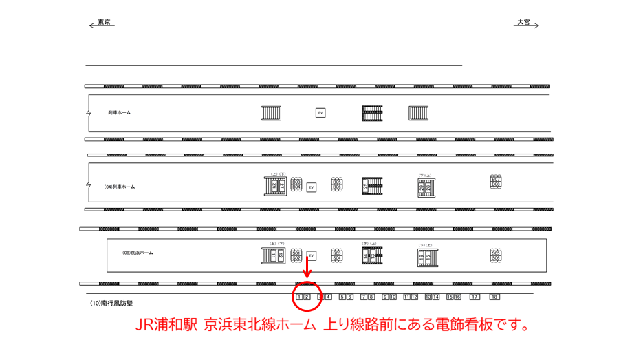 浦和駅から、南浦和・上野・東京方面へ向かう電車を待つ方に見てもらえます。