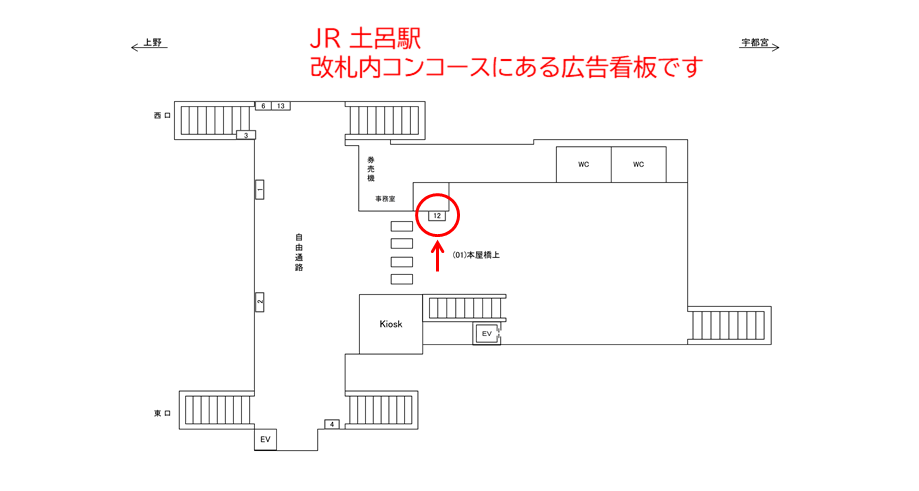 駅看板「JR 土呂駅 本屋橋上№12」