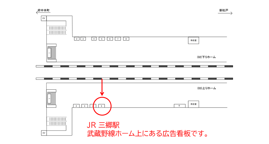 JR 三郷駅の武蔵野線ホーム上にある看板です。