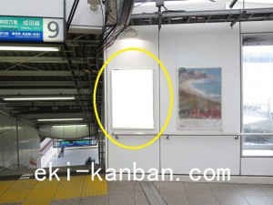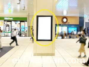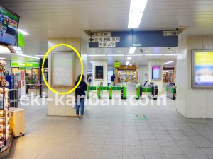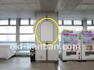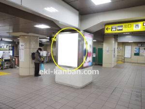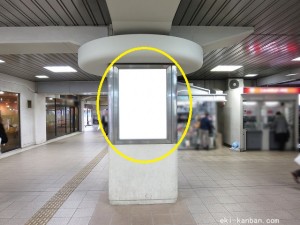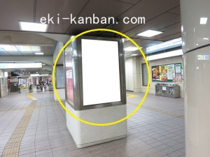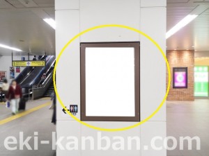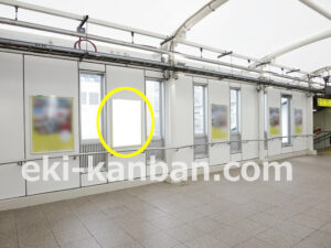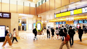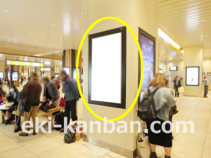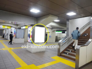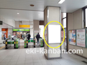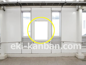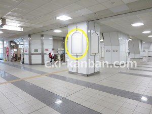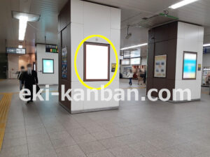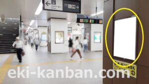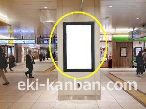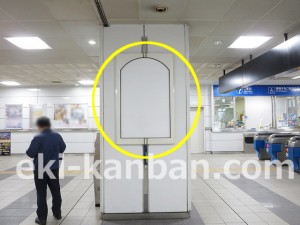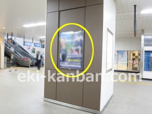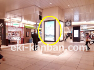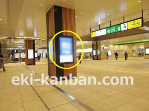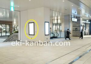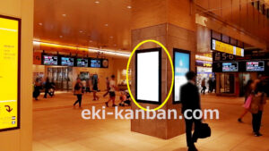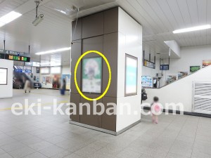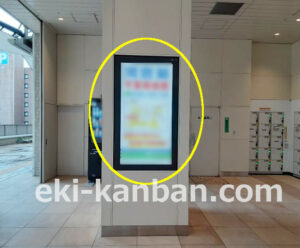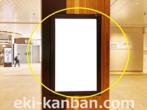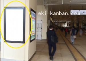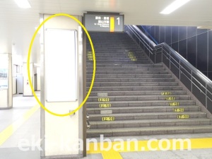 JR 千葉駅東口、改札外コンコースの駅広告(駅看板)設備のご紹介です。 改札階の柱に設置された目線の高さの電飾看板です。 駅利用者のみならず、駅周辺を行き来する方、待ち合わせ等で立ち止まっている方などを対象に誘導・施設紹介としてご利用頂けます。 こちらの媒体は東口改札階と地上階をつなぐ階段そばにある広告です。 利用者の流れなどを含め現地ロケーションをご確認いただくことを推奨いたします。 駅看板は長期的に駅広告のご実施を検討中の方にお勧めいたします。 ※千葉駅の看板の最新の販売状況については直接お問い合わせください。