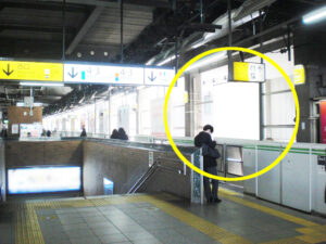 恵比寿駅の山手線・埼京線湘南新宿ラインのホーム階段正面にある広告看板です。こちら以外の広告についてはスタッフまでお問い合わせください。