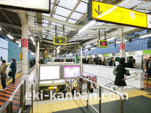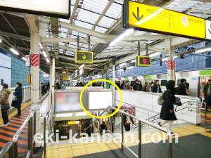 五反田駅の山手線ホーム階段にある広告看板です。ホームから中央会さぐ口方面へ向かう方に正面です。こちら以外の広告についてはスタッフまでお問い合わせください。