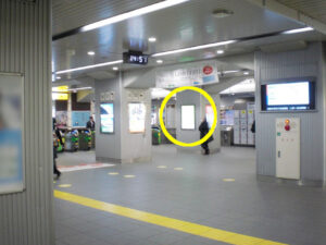 五反田駅の中央改札口周辺にある広告看板です。内外にある柱を中心に広告設備があります。こちら以外の広告についてはスタッフまでお問い合わせください。