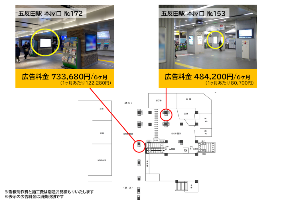 2020年2月に発表されたJR五反田駅の新設駅看板情報です。場所は中央改札口の外通路5箇所です。詳細はこちらの記事をご覧ください。広告の申込状況や利用状況についてはお問い合わせください。