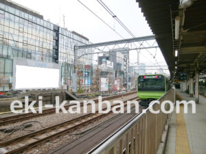 原宿駅の山手線の線路向こうにある広告看板です。ホームから距離がありますがサイズが大きくプランディングにオススメです。広告需要の高いエリアで販売情報が出て来にくいエリアです。これら以外の広告についてはスタッフまでお問い合わせください。