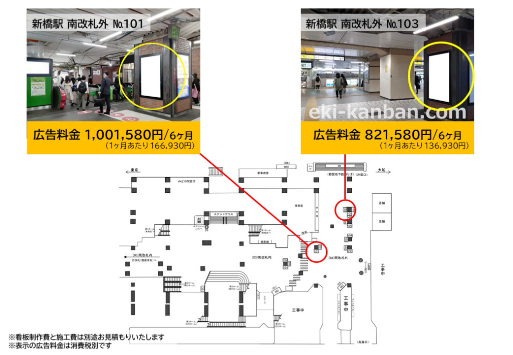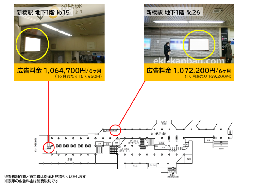 新橋駅の汐留地下改札付近にある広告看板情報です。