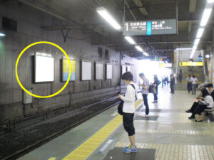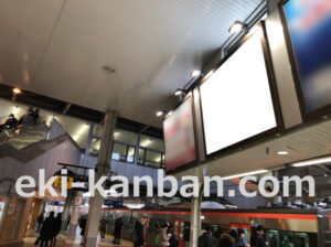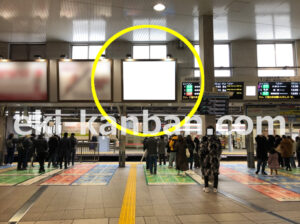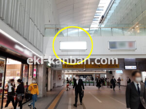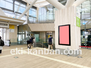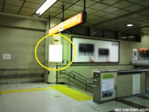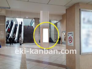JR品川駅、コンコースの駅広告(駅看板)設備紹介です。 中央改札及び北改札を出場し、高輪口(西口)方面へ向かう方々にご覧いただけます。こちらの看板は、階段を下った先の柱に設置されている広告看板です。高輪口の出口付近です。 コンコース看板の特徴として駅利用者の移動中に広告接触を図れる事が出来ます。コンコース看板は駅出口付近に設置されている事も多く、駅周辺の店舗施設への誘導案内に適しています。看板の設置ロケーション次第でスムーズな集客動線に結び付けられます。 駅看板は6ヶ月や12ヶ月の広告スパンで利用される駅広告で、月額の広告コストが他の駅広告と比べて価格が抑えられております。 駅看板は駅構内で長期的に(また継続的に)広告掲載をお考えのお客様にオススメしている広告商品です。 JR品川駅の駅看板の利用状況はスタッフまでお問い合わせください。この看板はもちろんですが、他にもいい広告看板が空いていれば合わせてご案内差し上げます。