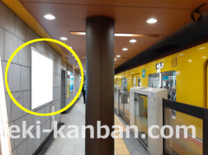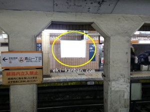 東京メトロ 青山一丁目駅、改札内の駅広告(駅看板)設備をご紹介いたします。 「東京メトロ 青山一丁目駅 銀座線№15」は改札内、ホーム(東京メトロ 銀座線 浅草方面)と繋がる通路上にございます。 主に浅草方面の電車をご利用の方にご覧いただけます。 駅看板は6ヶ月や12ヶ月の広告スパンで利用される駅広告で、月額の広告コストが他の駅広告と比べて価格が抑えられております。 駅看板は駅構内で長期的に(また継続的に)広告掲載をお考えのお客様にオススメしている広告商品です。 東京メトロ 青山一丁目駅の駅看板の利用状況はスタッフまでお問い合わせください。この看板はもちろんですが、他にもいい広告看板が空いていれば合わせてご案内差し上げます。