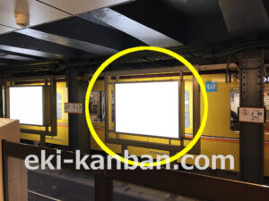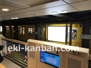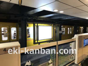 東京メトロ 上野駅、ホームの駅広告(駅看板)設備をご紹介いたします。 銀座線の線路前に設置された電飾タイプの広告看板で、田原町・浅草方面への電車待ちの方にご覧いただけます。またこちらの看板は「上野公園方面改札」へ向かう階段近い設置ロケーションとなっております。 電車を待つ時間を利用し、乗客に広告訴求します。 比較的長い時間接触させる事が出来ますので、企業ブランディングや商品サービス周知に適したロケーションです。 JR各線、日比谷線への乗り換えもございます。各線への乗り換え利用される方への広告としてもご利用いただけます。 駅看板は6ヶ月や12ヶ月の広告スパンで利用される駅広告で、月額の広告コストが他の駅広告と比べて価格が抑えられております。 駅看板は駅構内で長期的に(また継続的に)広告掲載をお考えのお客様にオススメしている広告商品です。 東京メトロ 上野駅の駅看板の利用状況はスタッフまでお問い合わせください。この看板はもちろんですが、他にもいい広告看板が空いていれば合わせてご案内差し上げます。