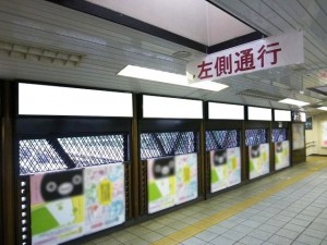 山手線ホームから表参道口改札へ向かう途中に通る跨線橋の広告です。
