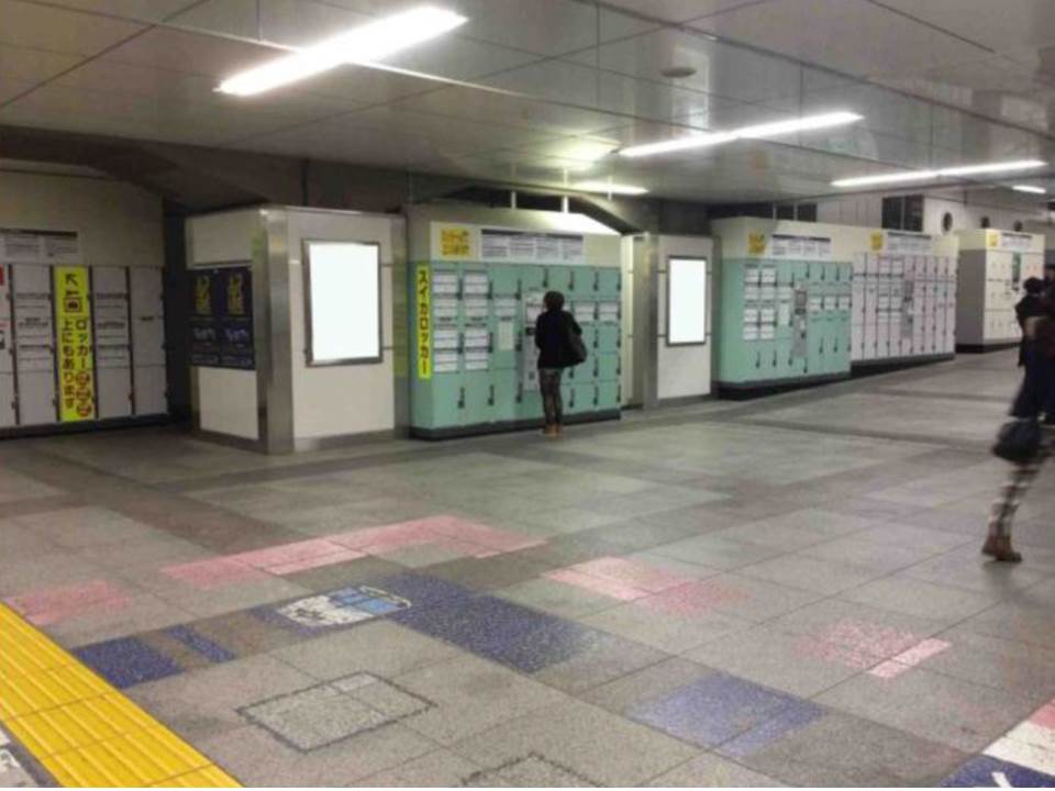 改札内コンコースの柱に設置された14面の駅看板を短期使用できる広告商品です。
