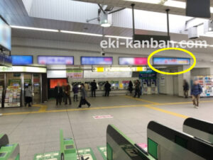 改札を出て正面やや右手(南口)寄りに位置しており、混雑時、時間帯を問わず視認性が確保できる頭上の電飾看板となります。